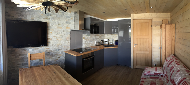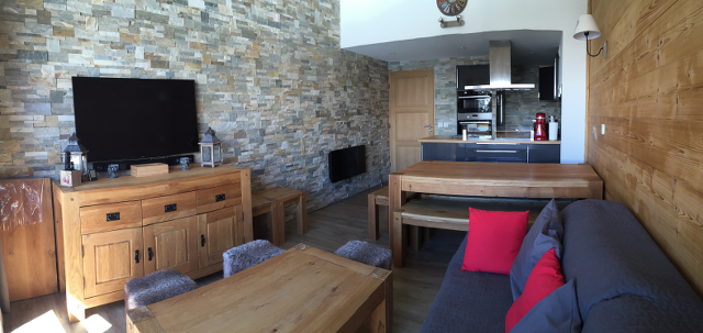 Profitez d'une magnifique vue sur la vallée et les pistes depuis votre séjour et balcon, grâce à l'orientation ensoleillée Sud Est des appartements.